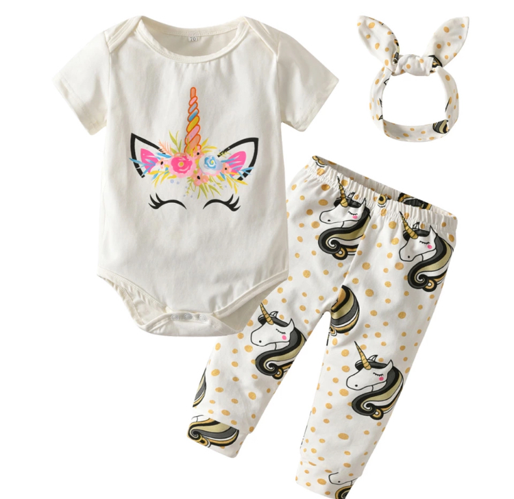 Conjunto bebé niña unicornio 3 piezas